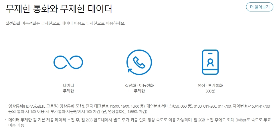 영상통화, 부가음성통화는 월 300분만 제공됩니다.